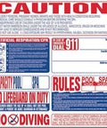 The 8-in-1 format consolidates all critical safety warnings and operational notices into a single, professional-grade display. It’s the easiest way to meet Title 22 signage requirements for public and semi-public pools while reducing visual clutter on your pool deck.